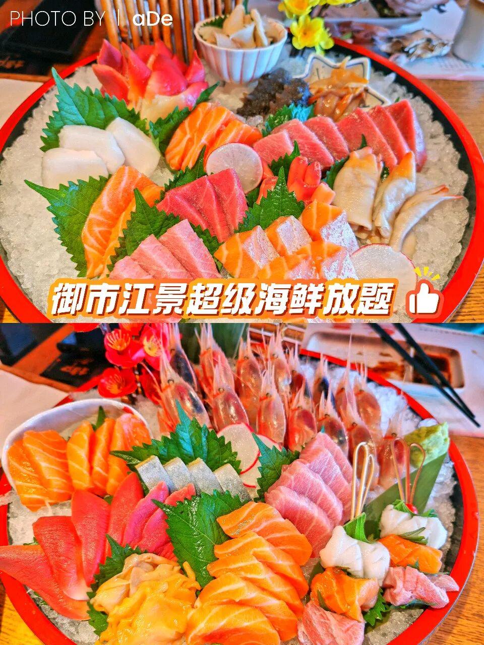 【探店Tips】地址:越秀区沿江中路298号江湾阳光天地3楼营业时间:11:30-14:00|17:30-21:30人均:200+(海鲜放题+刺身无限续!)交通:地铁6号线团一大广场站B口步行300m