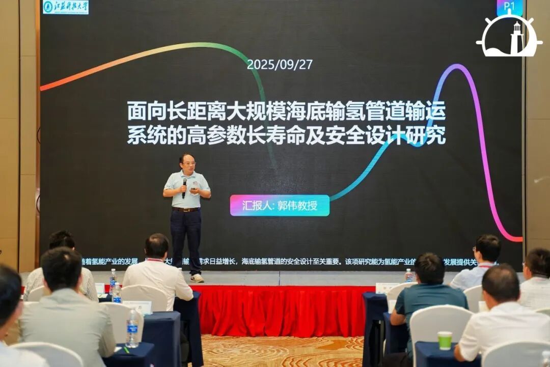 在那之前,2025年9月底,浙江大学主办的2025年国际海洋工程与可再生能源会议上,郭伟以俄罗斯工程院外籍院士的身份出席,并作主题为“面向长距离大规模海底输氢管道运输系统的高参数长寿命及安全设计研究”的嘉宾分享。