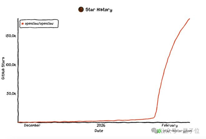 国外那边,从1月底开始,OpenClaw在GitHub上获得的Star数就跟坐火箭一般突飞猛进,现在已经涨到了18.9万之多。