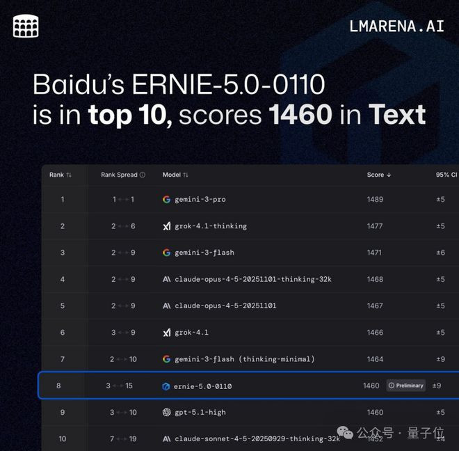 在榜单上也是相当能打:1月15日,LMArena大模型竞技场排名显示,ERNIE-5.0-0110登上LMArena文本榜国内第一、全球第八,超过GPT-5.1-High、Gemini-2.5-Pro等多款国内外主流模型。